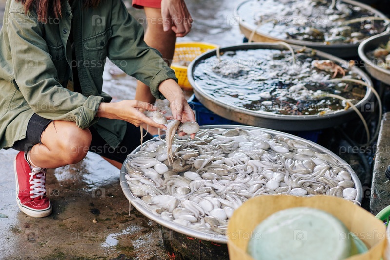 Непризнанная женщина покупает осьминогов