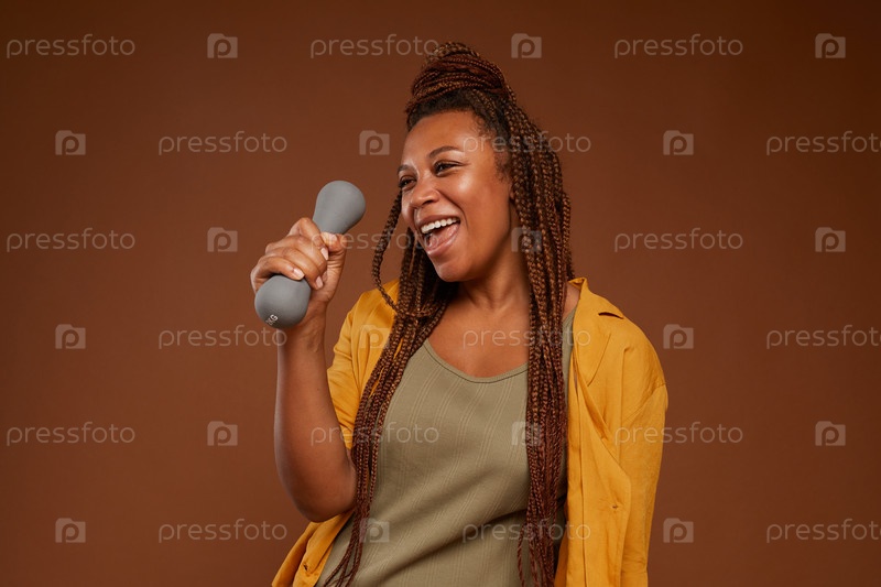 Счастливая женщина с гантеликами