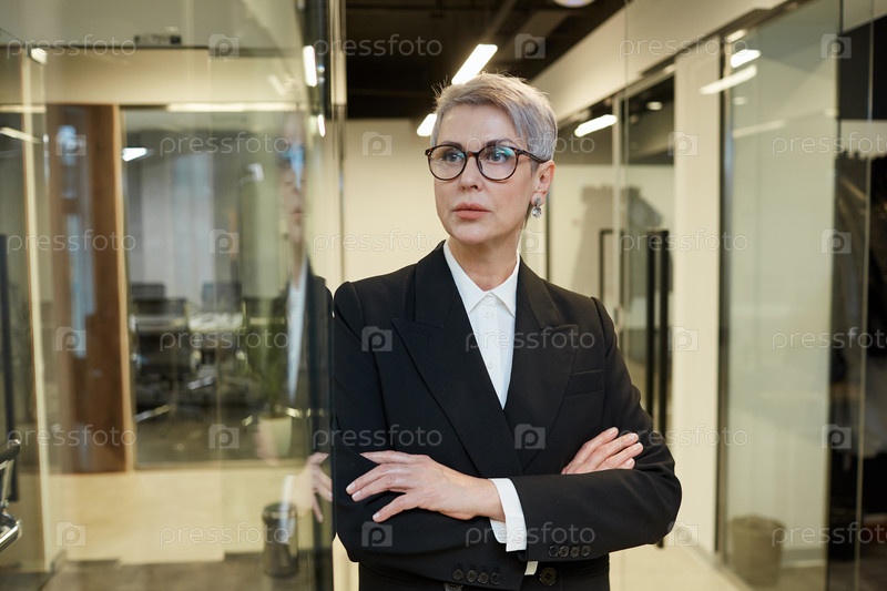 Портрет элегантной зрелой деловой женщины в офисном зале