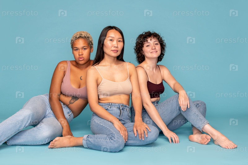 Три молодых современных женщины азиатской и африканской этнических групп