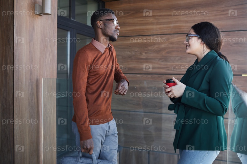 Портрет молодого афроамериканца, разговаривающего с коллегой на открытом воздухе