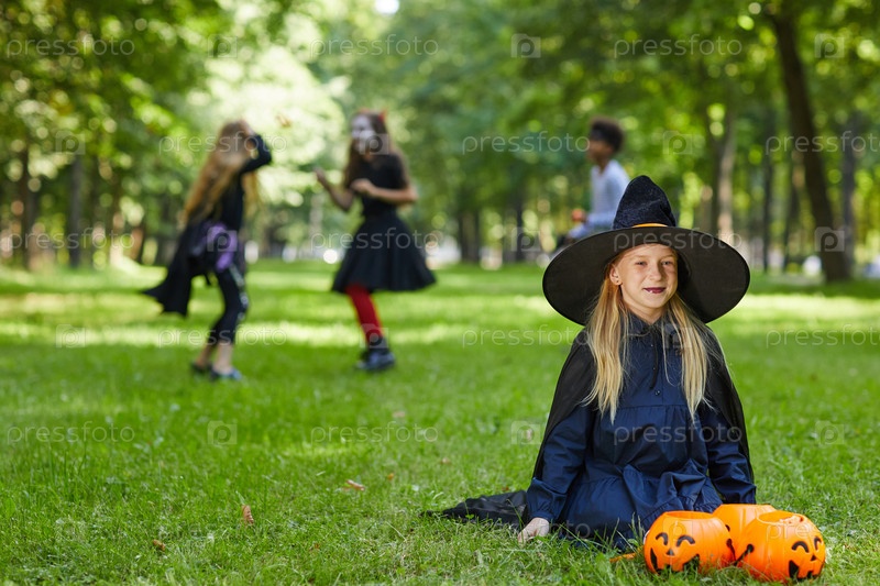 Дети играют на улице в Хэллоуин