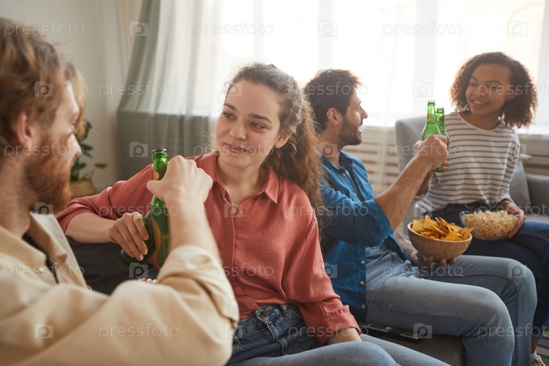 Друзья, наслаждающиеся случайным разговором на вечеринке