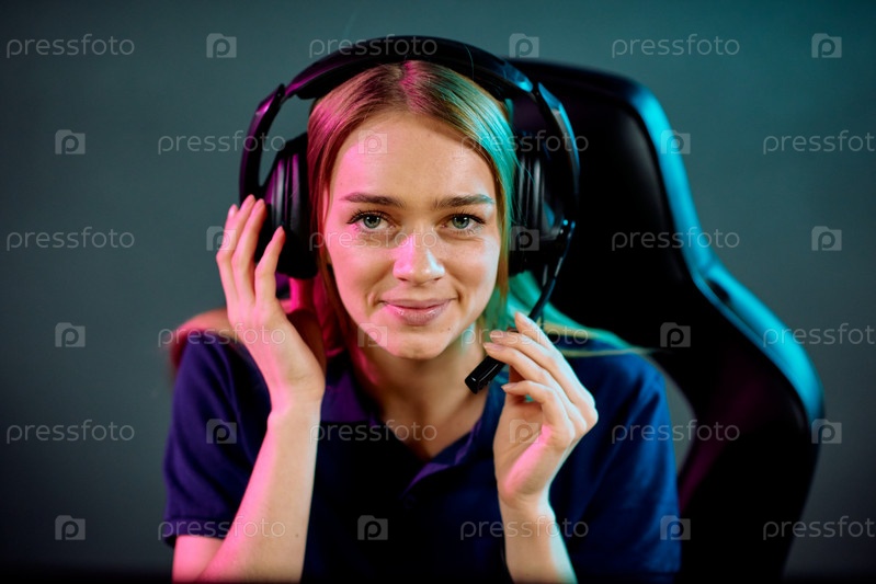 Красивая юная улыбающаяся оператор современного колл-центра смотрит на тебя