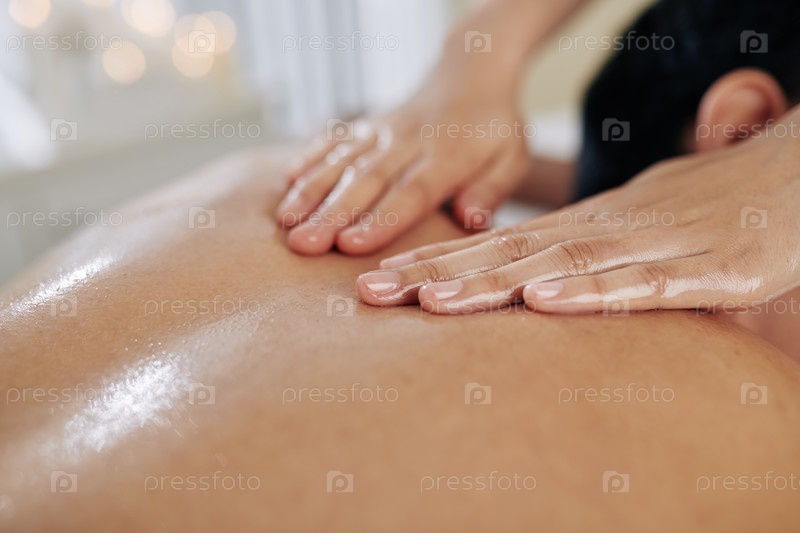 Массаж спины органическим маслом