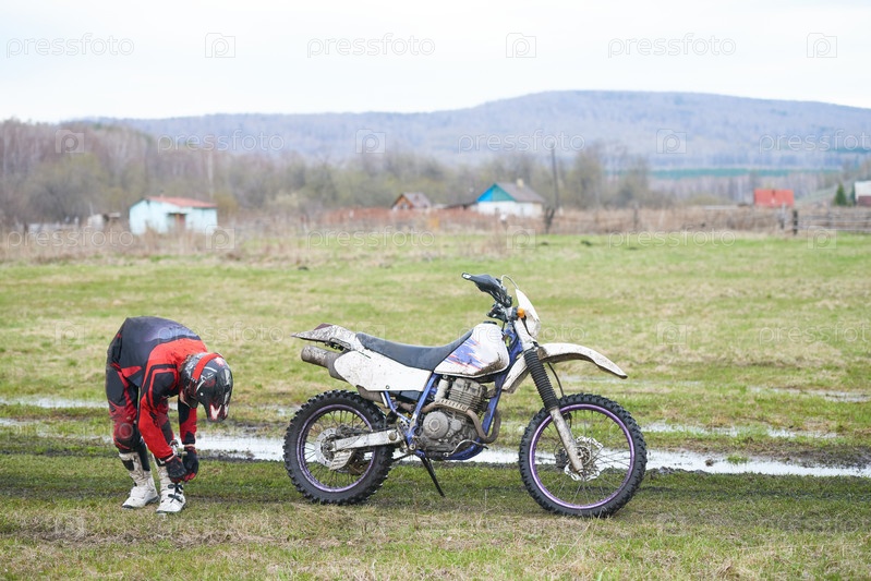 Мотоциклист готовится к кресту
