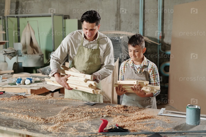 Работа с сыном в столярной лавке