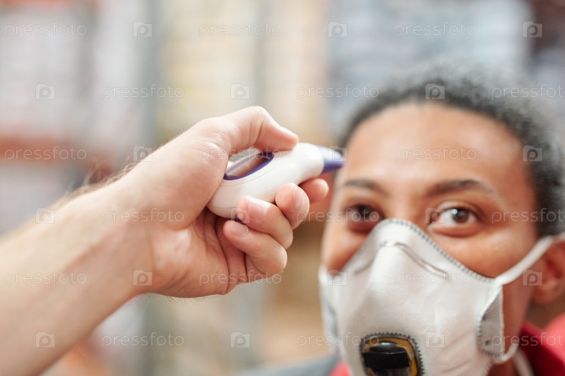 Рука мужского главного менеджера или медицинских вещей, измеряющих температуру тела