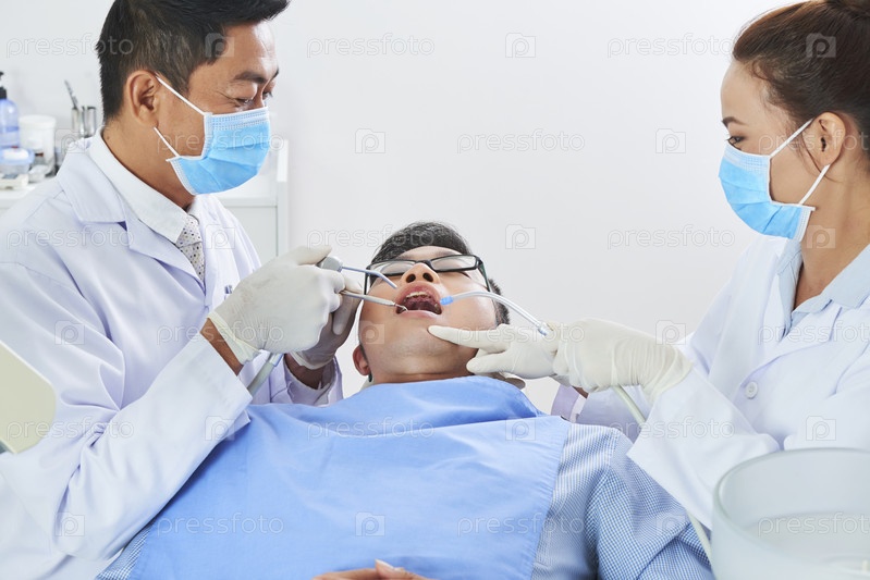 Два азиатских стоматолога работают