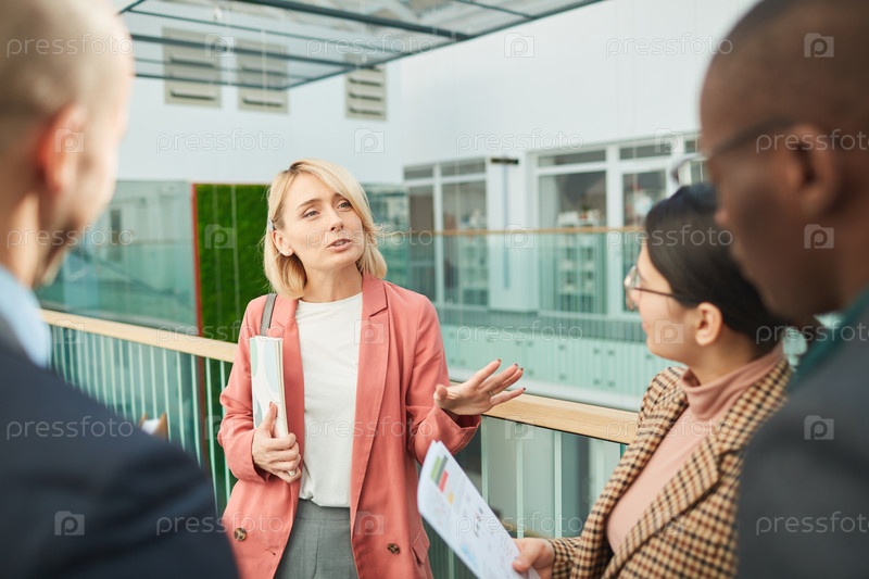 Женщина-лидер разговаривает со своей командой