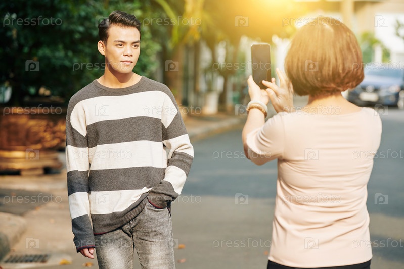 Мать фотографирует своего сына