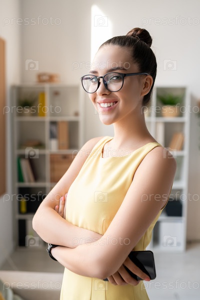 Портрет веселой девушки в очках