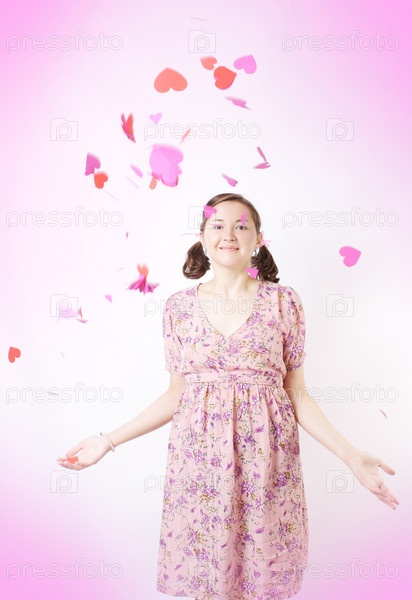 Портрет девушки с бумажными сердцами