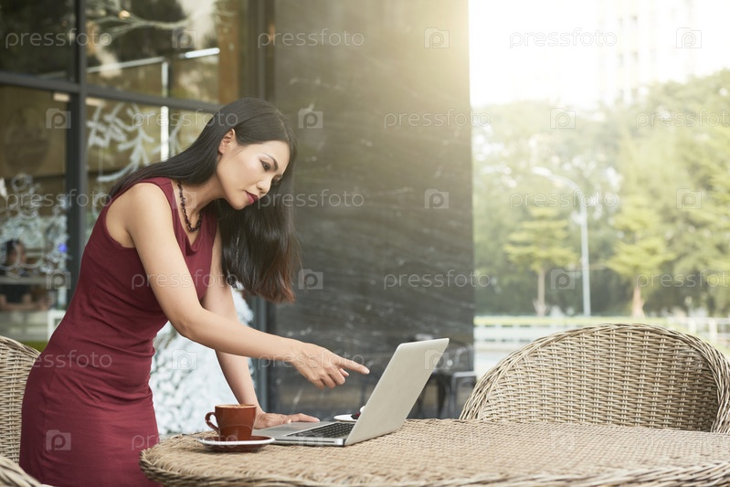 Деловая женщина, указывающая на экран ноутбука