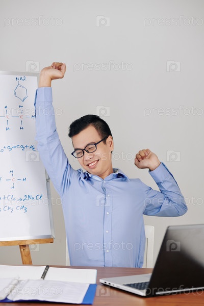 Растягивающая молодая учительница