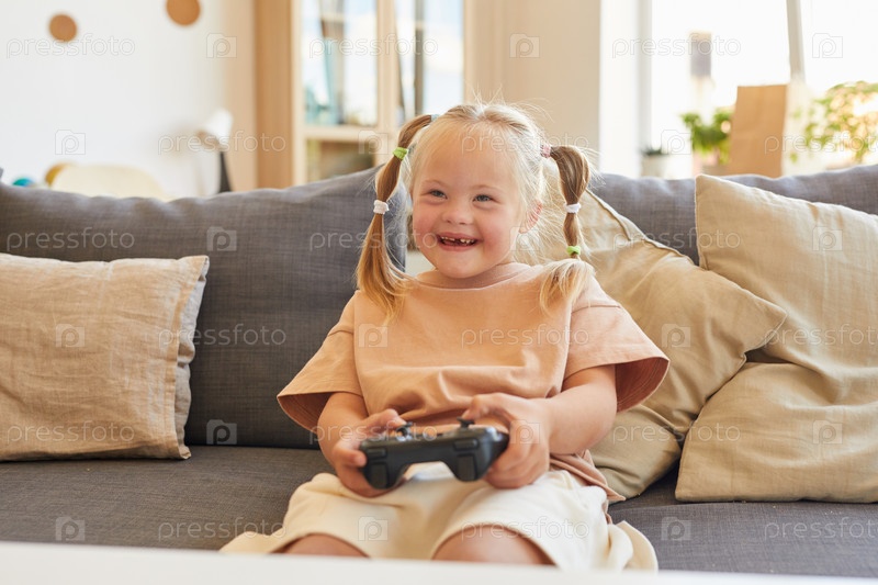 Девушка с синдромом Дауна играет в видеоигры