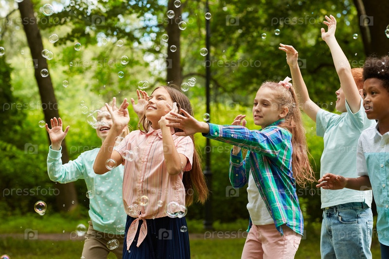 Беспечные дети веселятся в парке