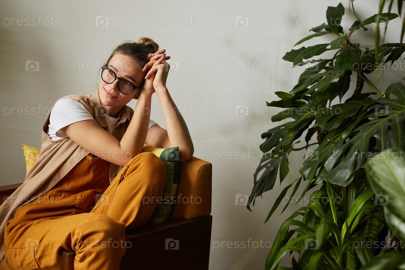 Женщина, отдыхающая на кресле