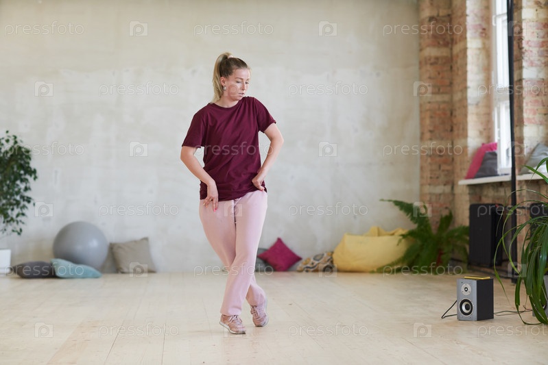 Женщина танцует в танцевальной студии
