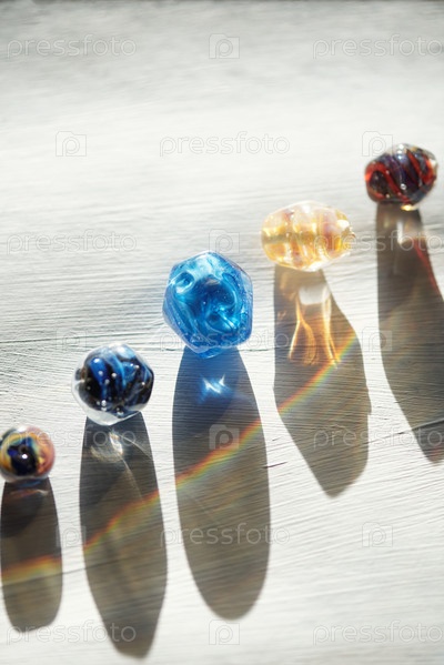 Ряд стеклянных бусин различных цветов, размеров и форм для ожерелий и теней