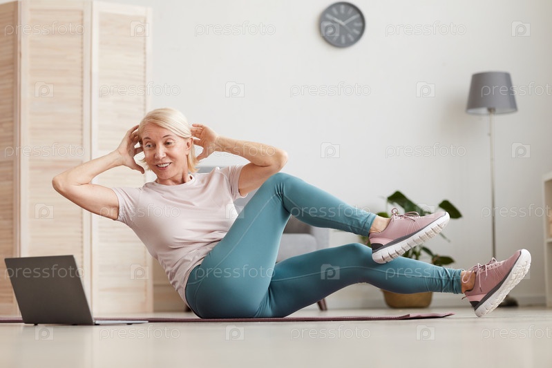 Женщина делает упражнения дома
