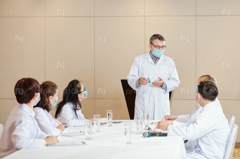 Врач показывает вакцину от коронавируса