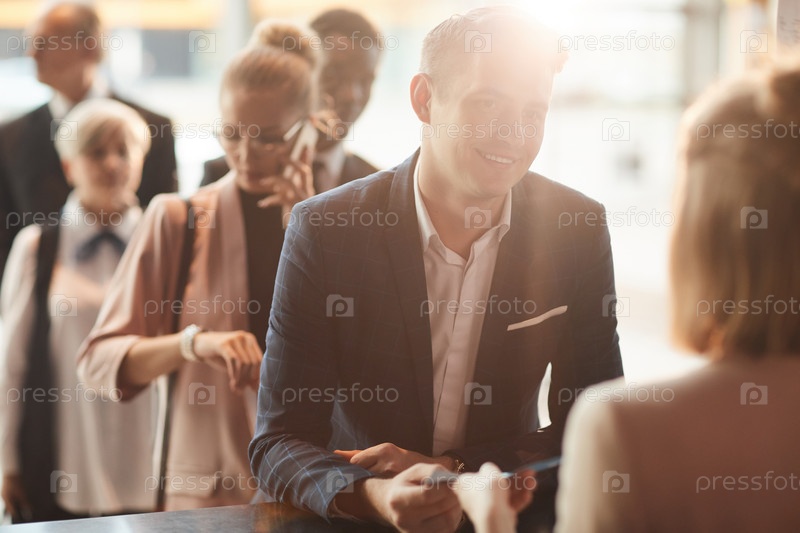 Бизнесмен дает свой билет на конференцию