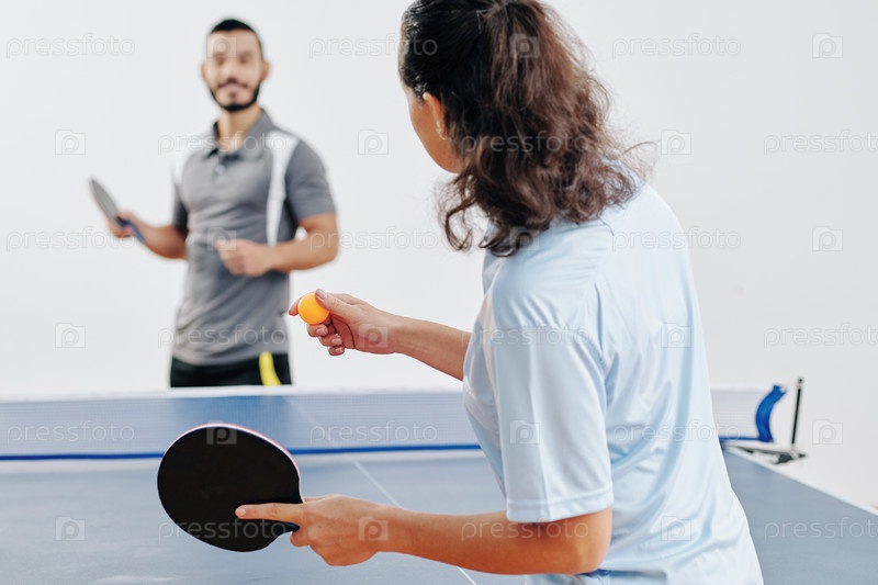 Пара играет в настольный теннис