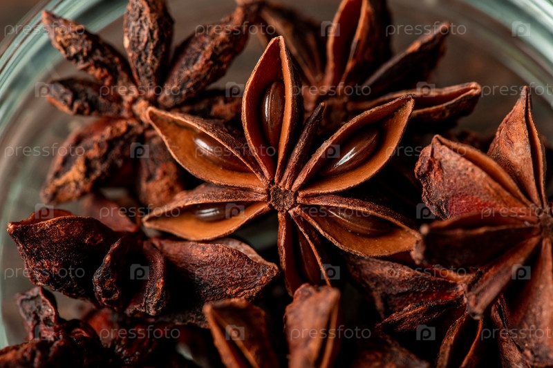 Макро выстрел сухого звездочного аниса коричневого цвета, который используется для приготовления глинтвейна