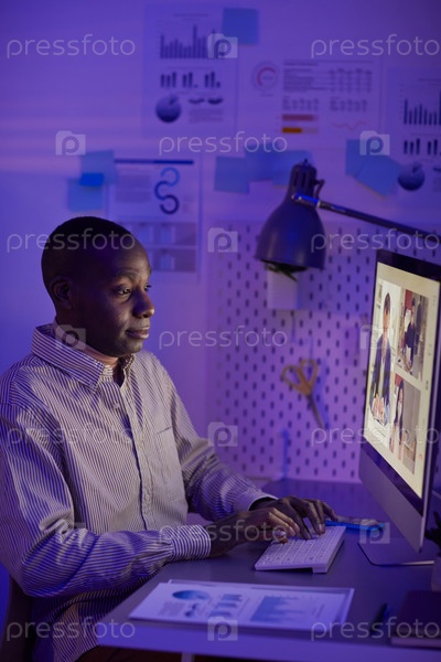 Мужчина смотрит видеоконференцию