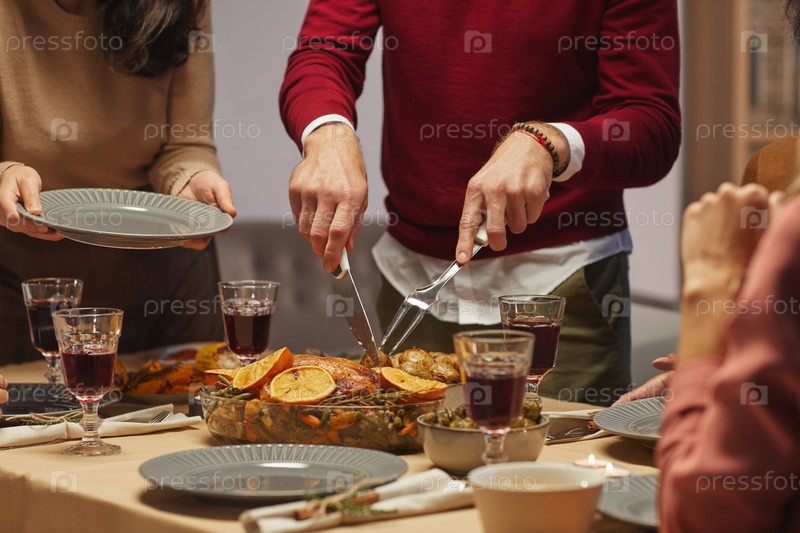 Человек, режущий индейку на День благодарения