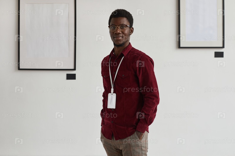 Молодая афроамериканская трудящаяся позирует в музее