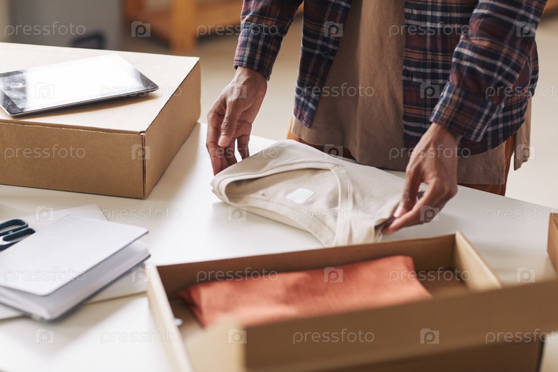 Мужчина упаковывает новую одежду