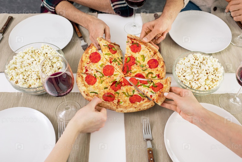 Люди, которые берут кусочки пиццы