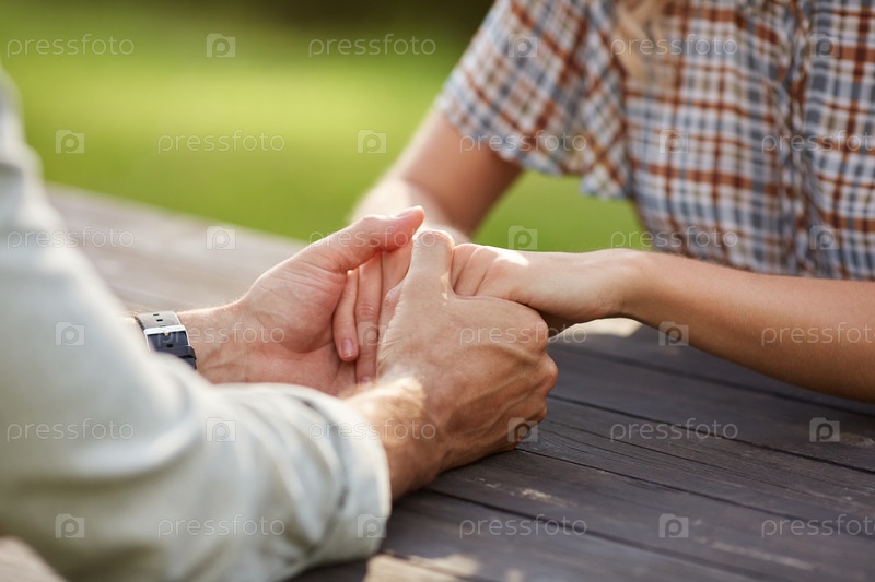 Романтическая пара, держащаяся за руки на свидании на свежем воздухе