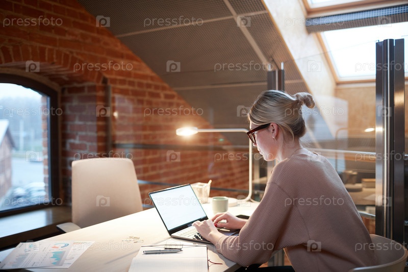 Молодая женщина работает над ноутбуком