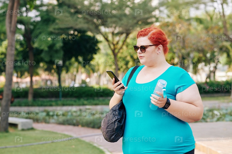 Женщина большего размера, гуляющая в парке