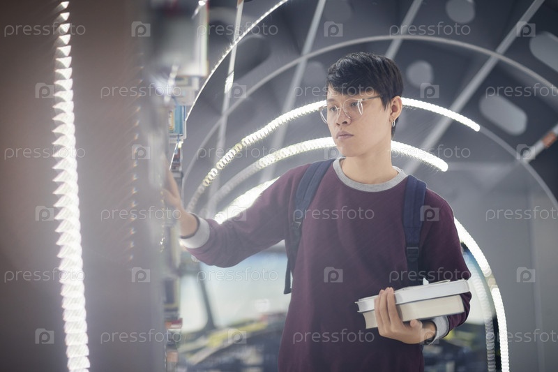 Азиатский мужчина берет книги для учебы