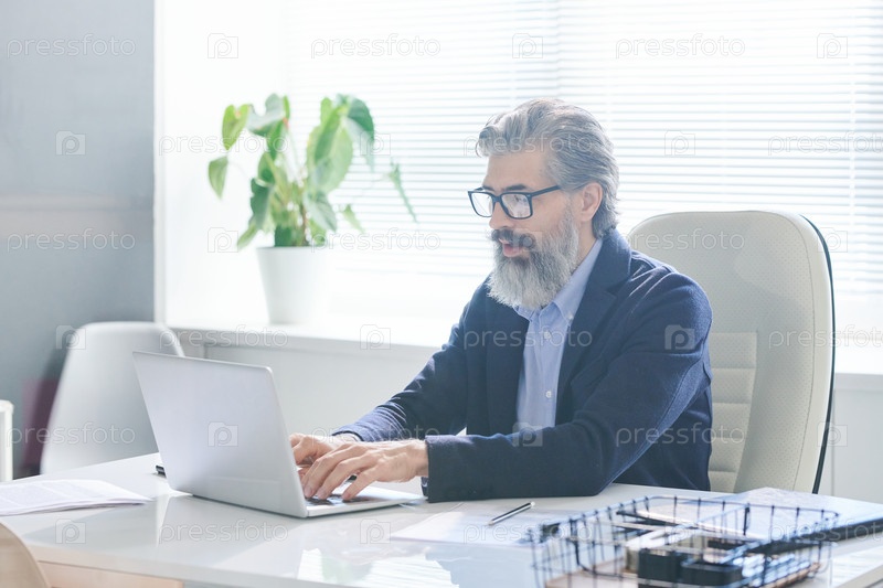 Зрелый мужчина работает на ноутбуке