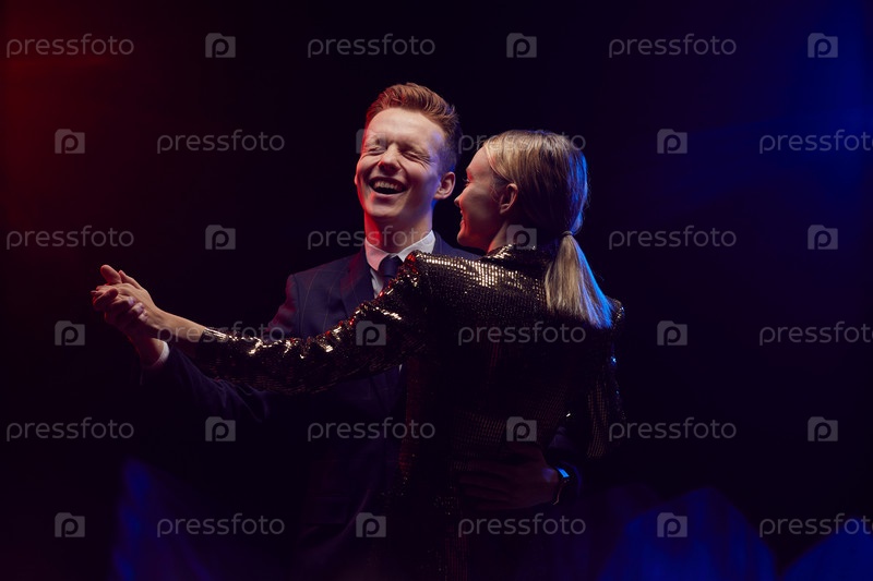 Молодая пара, танцующая медленно в темноте