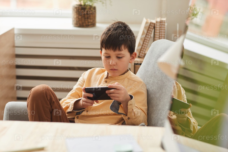 Мальчик, играющий в мобильные игры