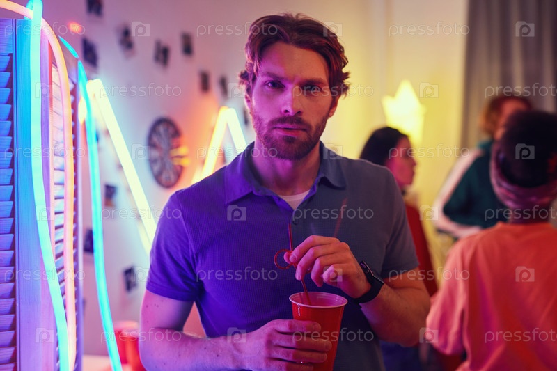 Мужчина с коктейлем на вечеринке