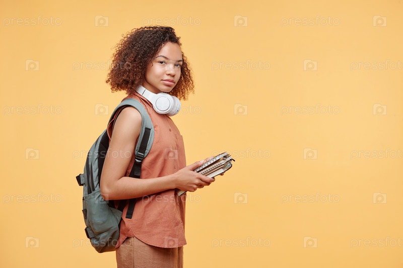 Черная девушка с афро причёской, держащая книги