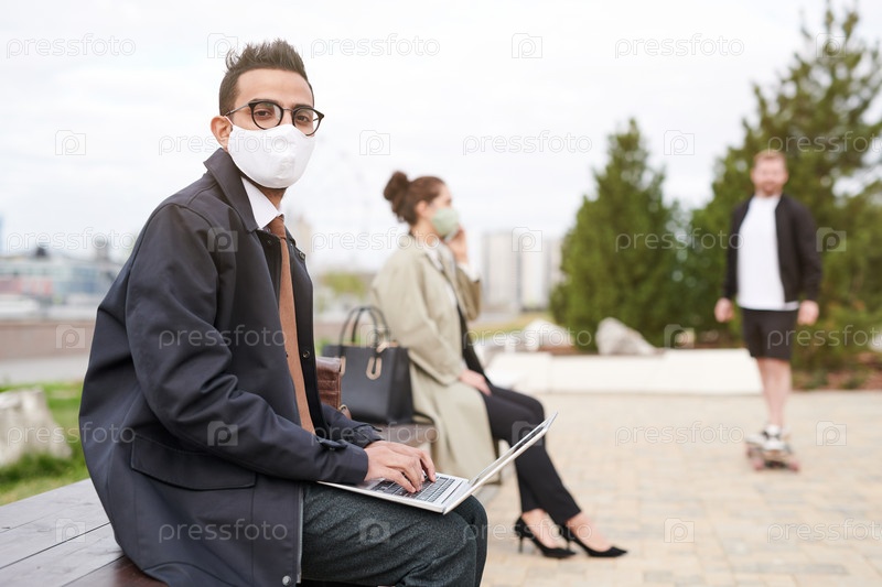 Араб с ноутбуком в городском парке