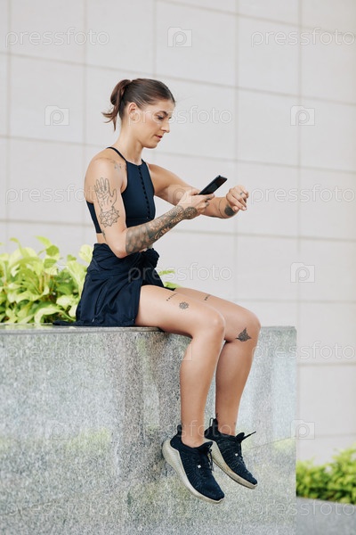 Спортсменка проверяет пульсовый трекер
