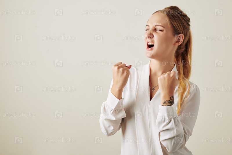 Женщина демонстрирует победоносный жест