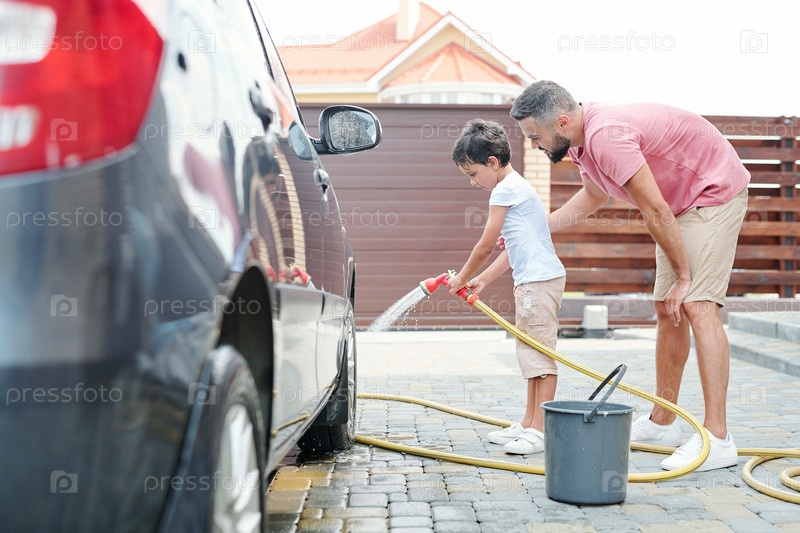 Отец и мальчик моют машину