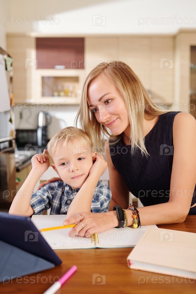 Мать объясняет урок ребенку