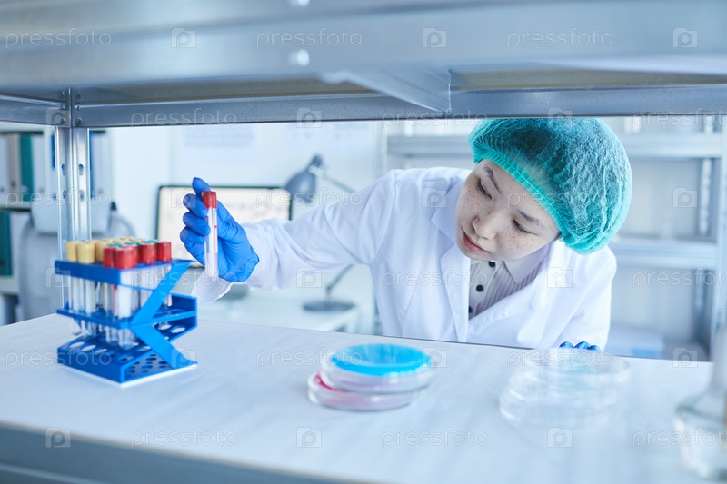 Женщина-ученый, выходящая из тестовой трубки