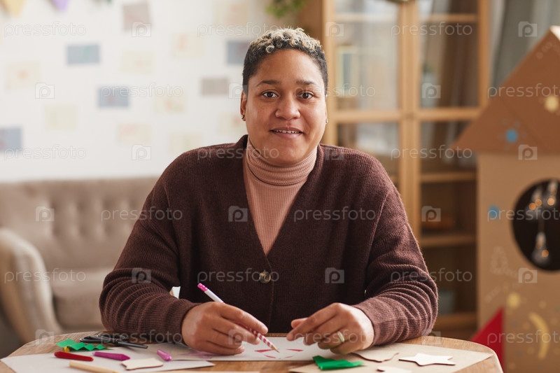 Афроамериканская женщина делает рождественские открытки